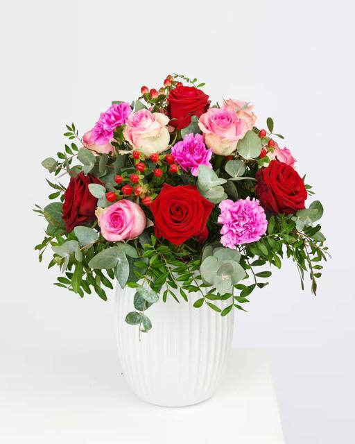 Fleurop's flower arrangements are handmade at a local flower shop. You can find a bouquet for every taste, from small to luxurious. Choose a suitable price and the florist will arrange a memorable flower gift similar to the picture. The arrangement on the picture ranges from "Golden mean" to "Luxurious" size.