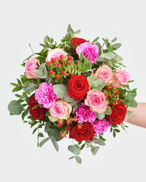 Complement the flowers with a box of chocolates, quality wine, fruits, a soft toy or a design card with your personal message. This way you can make the surprise more personal.