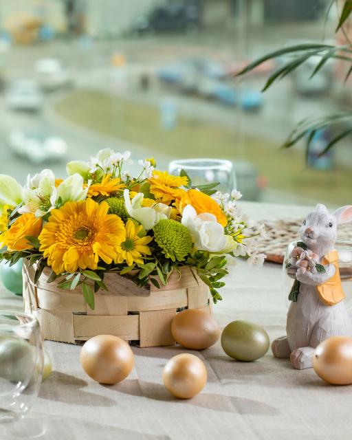 A sárga és fehér virágok az örök boldogság szívmelengető történetéről mesélnek. A történet happy-end-je lehet, amikor az “Öröm Szikrái” kosarat egy kedves gyermek születésnapjára vagy Húsvéti dekorációként küldi.