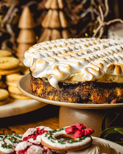 Ez a mennyei karácsonyi torta pirított vajas kaláccsal, szilvakelvárral, vaníliakrémmel és tojáshabbal készül. A torta 12 szeletes.Csak Budapesten és vonzáskörzetében elérhető.
